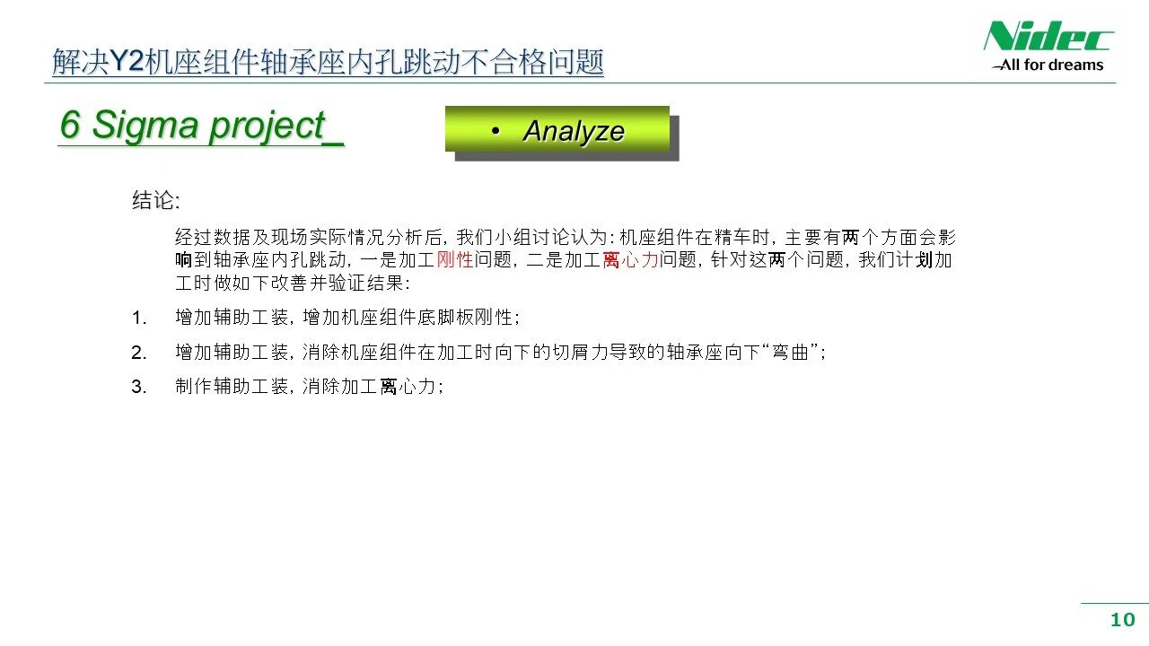 DMAIC بہتری کے عمل میں پانچ مراحل شامل ہیں: وضاحت ، پیمائش ، تجزیہ ، بہتری اور کنٹرول۔ یہ پانچ مراحل عمل کے معیار میں بہتری کا ایک مکمل طریقہ کار ہیں ، اور ہر مرحلے میں کام کے کئی مراحل پر مشتمل ہوتا ہے۔ مندرجہ ذیل مسئلے کی بہتری کی ایک مختصر وضاحت ہے کہ سامنے اور عقبی بیئرنگ چیمبروں کی ہم آہنگی اور اسمبلی کے اختتام چہرے کا رن آؤٹ ڈبل سپورٹ مشین بیس اور بیئرنگ چیمبر اسمبلی کی اسمبلی کے بعد غیر مستحکم ہے۔
