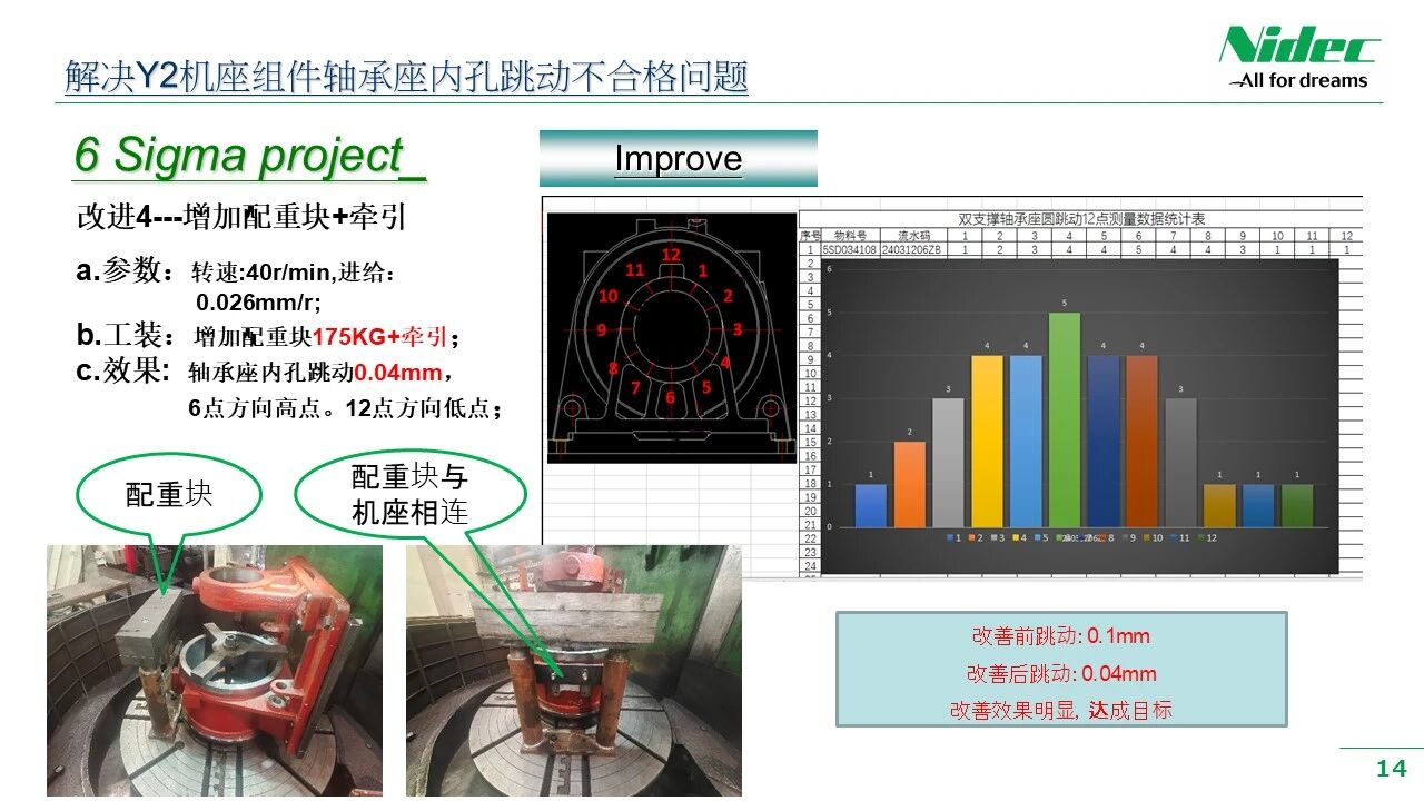 تجزیہ اور توثیق کے نتائج کی بنیاد پر ، ٹیم نے ہدف کے حل کی تجویز پیش کی اور اس کا اطلاق کیا۔ اس میں عمل کی اصلاح ، ٹکنالوجی کو اپ گریڈ کرنا ، آپریشن میں بہتری اور دیگر پہلوؤں شامل ہوسکتے ہیں۔ یہ ضروری ہے کہ ٹیم کو حل کی تاثیر کی تصدیق کرنے کی ضرورت ہے تاکہ یہ یقینی بنایا جاسکے کہ وہ اصل آپریشن میں متوقع نتائج پیش کرسکتے ہیں۔ ایک بار تصدیق کامیاب ہونے کے بعد ، ٹیم عمل کی تفصیل اور آپریشن کے طریقوں کو اپ ڈیٹ کرے گی تاکہ یہ یقینی بنایا جاسکے کہ نئے حل کو معیاری بنایا جاسکتا ہے اور مشینی عمل میں بہتری کے نتائج کو فروغ دیا جاسکتا ہے۔ مثال کے طور پر ، جب Y2 سیریز مشین بیس اسمبلی کے رن آؤٹ مسئلے کو حل کرتے ہو تو ، ہماری ٹیم نے تجزیہ مرحلے میں تجزیہ کردہ نتائج کی بنیاد پر ہدف حل حل کی تجویز پیش کی۔ ان حلوں میں بیئرنگ سیٹ کی معطل پوزیشن پر سپورٹ پوائنٹس شامل کرنا ، مشین بیس کے پاؤں پر اسٹیل پلیٹوں کو سختی کو بڑھانے کے لئے شامل کرنا ، اور مشین بیس کے پیروں کے سامنے کاؤنٹر وائٹس شامل کرنا شامل ہیں۔ اس کے بعد ، آزمائشی پروسیسنگ کی توثیق ایک ایک کرکے کی گئی تاکہ اس بات کی تصدیق کی جاسکے کہ پروسیسنگ کی توثیق کے اعداد و شمار نے ٹیم کے متوقع اہداف کو پورا کیا ، اور آخر کار ایک موثر حل ملا۔