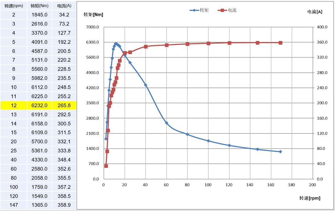 تخروپن کے نتائج کی درستگی کی تصدیق کرنے کے لئے ، موجودہ ٹیسٹ ڈیٹا والی ایک کرشن مشین کا انتخاب کیا گیا تھا ، جس کی درجہ بندی کی رفتار 159 RPM ہے۔ مختلف رفتار سے ماپنے مستحکم اسٹیٹ اسٹار سیلنگ ٹارک اور سمیٹنے والا موجودہ مندرجہ ذیل ہے۔ اسٹار سیلنگ ٹارک 12 آر پی ایم پر اپنی زیادہ سے زیادہ پہنچ جاتا ہے۔