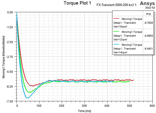 کرشن مشین کا ماپنے والا زیادہ سے زیادہ اسٹار سیلنگ ٹارک 12 آر پی ایم کی رفتار سے مساوی ہے۔ نقلی کے دوران ، پیمائش کی رفتار کے ساتھ سیدھ میں کرنے کے لئے رفتار کو 10 آر پی ایم ، 12 آر پی ایم ، اور 14 آر پی ایم کے طور پر پیرامیٹرائز کیا گیا تھا۔ نقلی اسٹاپ ٹائم کے بارے میں ، اس بات پر غور کرتے ہوئے کہ سمیٹنے والی دھاریں کم رفتار سے تیزی سے مستحکم ہوتی ہیں ، صرف 2–3 بجلی کے چکر لگائے گئے تھے۔ نتائج کے ٹائم ڈومین منحنی خطوط سے ، یہ فیصلہ کیا جاسکتا ہے کہ حساب کتاب اسٹار سیلنگ ٹارک اور سمیٹنے والا موجودہ مستحکم ہوچکا ہے۔ نقالی سے پتہ چلتا ہے کہ 12 آر پی ایم میں مستحکم ریاست اسٹار سیلنگ ٹارک 5885.3 این ایم میں سب سے بڑا تھا ، جو پیمائش کی قیمت سے 5.6 فیصد کم تھا۔ ناپنے والا سمیٹ کرنٹ 265.8 A تھا ، اور مصنوعی موجودہ 251.8 A تھا ، جس کی نقلی قیمت بھی ناپے ہوئے قیمت سے 5.6 ٪ کم ، ڈیزائن کی درستگی کی ضروریات کو پورا کرتی ہے۔