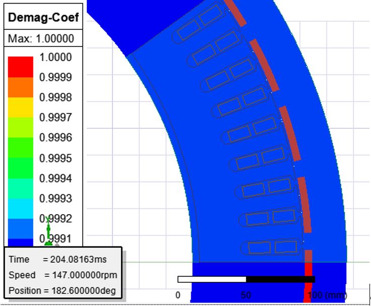 اس کے بعد ، میکس ویل سافٹ ویئر کا استعمال کرتے ہوئے اس کرشن مشین کا محدود عنصر تجزیہ کیا گیا۔ سب سے پہلے ، کرشن مشین کا ہندسی ماڈل قائم کیا گیا تھا ، اور اسی طرح کے مادی خصوصیات اور حد کے حالات مرتب کیے گئے تھے۔ اس کے بعد ، برقی مقناطیسی فیلڈ مساوات کو حل کرکے ، مختلف اوقات میں مستقل میگنےٹ کی ٹائم ڈومین موجودہ منحنی خطوط ، ٹارک منحنی خطوط ، اور ڈیمگنیٹائزیشن ریاستیں حاصل کی گئیں۔ تخروپن کے نتائج اور ماپا ڈیٹا کے مابین مستقل مزاجی کی تصدیق کی گئی۔